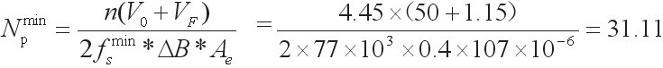 成立,故變壓器的線圈匝數(shù)為:初級NP=36Ts,次級Ns=8Ts。