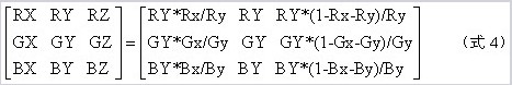 據(jù)色域空間變換的需要,有: