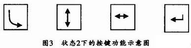 在狀態(tài)1及狀態(tài)3下,按鍵的功能比較容易理解,這里來對(duì)狀態(tài)2下的按鍵功能進(jìn)行說明,圖3所示依次為1、2、3、4鍵。其中按鍵1可進(jìn)入設(shè)定狀態(tài),上面一行顯示參數(shù)的值,下面一行顯示當(dāng)前是第幾個(gè)參數(shù);按鍵2用于對(duì)當(dāng)前閃爍數(shù)據(jù)位進(jìn)行加1操作,可依次從0增加到9,當(dāng)增加到10時(shí),又自動(dòng)變?yōu)?;按鍵3用于改變?cè)O(shè)定的位,每按下一次,閃爍數(shù)據(jù)位向后移動(dòng)一位,當(dāng)移動(dòng)到第四位再按下此鍵時(shí),閃爍位變?yōu)榈谝晃?;按鍵4用于確認(rèn)參數(shù)的設(shè)定和保存。