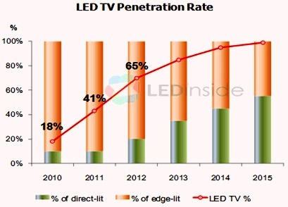 - 2012年LED背光電視(LED TV)滲透率將成長至65%