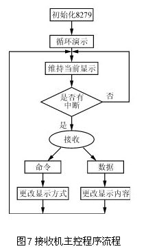 發(fā)射機(jī)主控軟件的功能是通過(guò)串行口接收上位PC機(jī)發(fā)送來(lái)的圖像點(diǎn)陣,讀取鍵盤(pán)命令,并向編碼器串行發(fā)送操作命令或顯示數(shù)據(jù)。