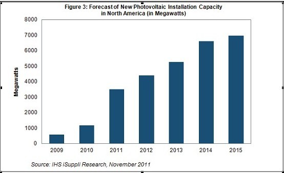 據(jù)IHS iSuppli公司的北美光伏市場報告,美國加州的許多太陽能項目經(jīng)過多年開發(fā)之后終于投產(chǎn),預計2011年北美的光伏(PV)太陽能系統(tǒng)安裝容量將大增200%。