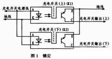 加鎖狀態(tài)下,計算機檢測光電開關輸出(上)信號,若為低電平,則輸出加鎖控制信號到電機,控制凸輪向上運動,擋片(圖1中虛線所示)隨凸輪運動逐漸擋住光電開關(上)發(fā)光部分,K1停止工作,光電開關輸出(上)變?yōu)楦唠娖?,即加鎖到位信號,控制計算機接收高電平并撤銷對電機的控制信號;解鎖狀態(tài)下,計算機檢測光電開關輸出(下)信號,若為低電平,則輸出解鎖控制信號到電機,控制凸輪向下運動,擋片隨凸輪運動逐漸擋住光電開關(下)發(fā)光部分,K2停止工作,光電開關輸出(下)變?yōu)楦唠娖剑唇怄i到位信號,控制計算機接收高電平并撤銷對電機的控制信號。