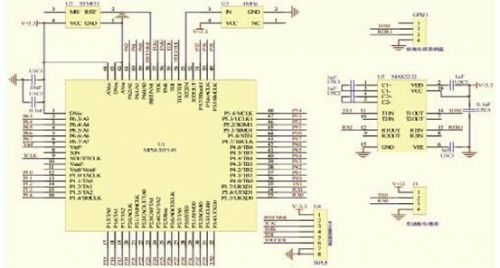 數(shù)據(jù)處理與無線數(shù)傳電路設(shè)計(jì)主要包括主控制器電路、傾角傳感器接口電路、無線數(shù)傳模塊接口電路、電源電路等。基本工作原理是:系統(tǒng)通上電后,主控制器控制傾角傳感器按固定間隔檢測(cè)火箭炮車體姿態(tài),將接收到的檢測(cè)結(jié)果運(yùn)算處理,計(jì)算每個(gè)千斤頂?shù)恼{(diào)整量,再通過無線數(shù)傳模塊發(fā)送給操縱指示器。