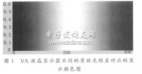 試驗(yàn)選用VA 液晶顯示器共8 小單元,分別調(diào)配合適液晶,使光程差從小到大分別為320nm、460nm、544nm、572nm、600nm、612nm、624nm 和648nm。