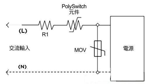 在照明系統(tǒng)中采用第二類(lèi)功率源可成為降低成本、提高彈性的重要因素之一。固有的有限功率源,如變壓器、電源供應(yīng)器或電池等,可以包含保護(hù)組件,只要不依靠它們限制第二類(lèi)功率源的輸出即可。非固有型的有限功率源,按照定義,具有一個(gè)分立保護(hù)組件,當(dāng)電流和能量輸出達(dá)到預(yù)定值時(shí)它會(huì)自動(dòng)中斷輸出,各種電路保護(hù)組件都有助于提供LED照明應(yīng)用第二類(lèi)功率源的安全操作。圖4表示了一種協(xié)同保護(hù)策略的工作原理,它在交流輸入上采用了一個(gè)MOV,在輸出電路分支上采用了一個(gè)PolySwitch組件,可以幫助廠商滿(mǎn)足UL 1310第35.1小節(jié)針對(duì)開(kāi)關(guān)和控制裝置的過(guò)載試驗(yàn)要求。
