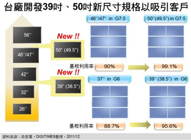 - 開(kāi)發(fā)新尺寸面板成2012年面板商提升平均單價(jià)搶占市場(chǎng)的重要方向
