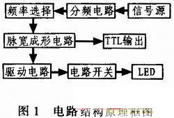 如前所述,該電路主要由信號源電路、分頻電路、頻率選擇、脈沖寬度成形電路、驅(qū)動電路、大功率電流開關(guān)等單元電路組成。內(nèi)置的信號源產(chǎn)生的信號經(jīng)過分頻、脈寬成形之后,送入驅(qū)動電路產(chǎn)生驅(qū)動信號,驅(qū)動大功率電流開關(guān)控制大功率藍(lán)光LED光源電路工作。同步的TTL輸出信號可作為檢測信號或其他電路的觸發(fā)與驅(qū)動信號。