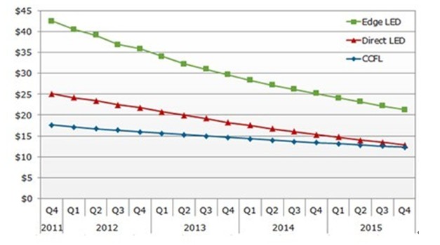 - 2011年第四季LED背光源模塊的價格比CCFL高42%