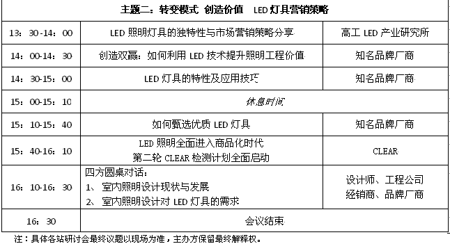 2012是高工LED的渠道年、服務(wù)年,為推廣LED照明節(jié)能產(chǎn)品,分享LED照明設(shè)計(jì)理念,增進(jìn)LED照明廠商、設(shè)計(jì)師、工程商、經(jīng)銷商之間的交流與合作,推動(dòng)LED燈具在家居、酒店、別墅會(huì)所、商場鋪、專賣店、餐飲、辦公、展館、地鐵站等室內(nèi)照明中的應(yīng)用。高工LED將進(jìn)行第三次長征(2010年全國LED產(chǎn)業(yè)調(diào)研、2011年全國燈具城調(diào)研),由高工LED、高工LED商城、《高工LED產(chǎn)品與市場》雜志聯(lián)合全國各地室內(nèi)裝飾設(shè)計(jì)協(xié)會(huì)、建筑設(shè)計(jì)機(jī)構(gòu)、照明及LED行業(yè)協(xié)會(huì)共同舉辦的“2012 LED照亮中國之旅”渠道開拓活動(dòng)-室內(nèi)LED照明設(shè)計(jì)全國巡回研討會(huì)暨全國室內(nèi)LED照明設(shè)計(jì)大賽,將于4‐8月在北京、西安、南京、杭州、上海、武漢、成都、廈門、深圳、廣州、中山11個(gè)重點(diǎn)城市舉辦。整個(gè)巡回研討會(huì)將有全國近1500名來自設(shè)計(jì)機(jī)構(gòu)、工程公司、經(jīng)銷商等單位專業(yè)人士參加,活動(dòng)將覆蓋超過20萬設(shè)計(jì)、工程、經(jīng)銷等各渠道群體。