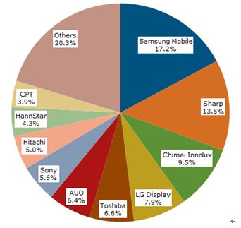 - 三星移動(dòng)顯示器在2011年市占率達(dá)到17.2%