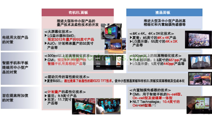 2012年,SMD和LG顯示器計(jì)劃量產(chǎn)電視用55英寸面板,友達(dá)光電(AUO)和奇美電子(CMI)計(jì)劃量產(chǎn)智能手機(jī)用中小型面板。日本廠商中,日本顯示器正在以2013年量產(chǎn)為目標(biāo)。索尼和松下也將共同開發(fā)大尺寸面板。隨著各競(jìng)爭(zhēng)公司紛紛表明涉足,“如果美國(guó)蘋果等大客戶有需求,夏普應(yīng)該也不會(huì)拒絕”(顯示器相關(guān)分析師)。