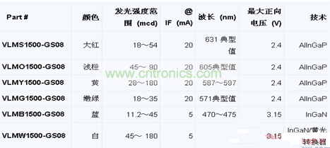 VLMx1500-GS08系列中的藍(lán)色和白色LED使用高效InGaN技術(shù),大紅、淺橙、黃色和嫩綠色器件使用最先進(jìn)的AllnGaP技術(shù),使光輸出提高了3倍。憑借高亮度和小尺寸,VLMx1500-GS08系列LED成為音響和視頻設(shè)備,辦公設(shè)備,液晶屏、開關(guān)和標(biāo)識(shí),室內(nèi)外照明,以及戶內(nèi)和戶外消息牌中為指示燈和背光提供可靠性能的絕佳之選。