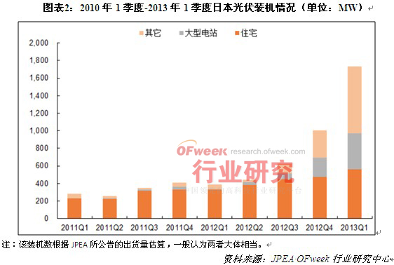 導(dǎo)讀: 根據(jù)日本經(jīng)濟(jì)貿(mào)易產(chǎn)業(yè)省公布數(shù)據(jù)顯示,2012年日本光伏新增裝機(jī)2.5GW,其中住宅項目為1.6GW,占比65%;2013年第一季度,日本新增裝機(jī)1.7GW。