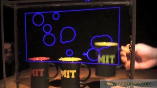 MIT的研究小組,已經(jīng)利用市售的納米銀粒子打造出了一套概念驗(yàn)證系統(tǒng)。最終效果如下圖所示(散射的藍(lán)光部分)。當(dāng)然,如果利用納米粒子分別調(diào)諧紅/綠/藍(lán)3色光的話,就能夠?qū)崿F(xiàn)全彩顯示。