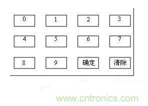 該系統(tǒng)采用4×3鍵盤,包含0~9共10個數(shù)字鍵、一個“確定”鍵和一個“清除”鍵。操作流程為:輸入2位設(shè)定溫度,按下“確定”,將設(shè)定溫度輸入到AT89C51內(nèi)用戶自定義區(qū)某存儲單元,作為半導(dǎo)體制冷片的啟動溫度。然后,同理再次輸入2位溫度,作為半導(dǎo)體制冷片的強制冷溫度。鍵盤工作原理:I/O口P1.0~P1.3充當(dāng)行選線,P1.5~P1.7(外接上拉電阻到+5V電源)充當(dāng)列選線。初始化時P1.0~P1.3置低電位,P1.5~P1.7置高電位并等待按鍵。當(dāng)有鍵按下時,相應(yīng)的列選線電平被強制拉低,讀相應(yīng)的行碼和列碼,則按鍵的編號即可確定。