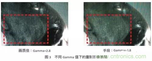 如果不采用提高LED順向電流的方式來掩蓋上述的缺點,另一種手段就是調整小點間距LED顯示屏的gamma曲線,灰階的亮度對于正確的影像重制是非常重要,因為在視訊源中亮度包含了大部份畫面數(shù)據(jù)。如圖3,右邊的圖像gamma值較小,代表中間色調的亮度太高,因此,整體畫面刷白又缺少深度,圖像上的細節(jié)損失不少,相較于左圖,右圖中的狗毛沒有那么有層次。