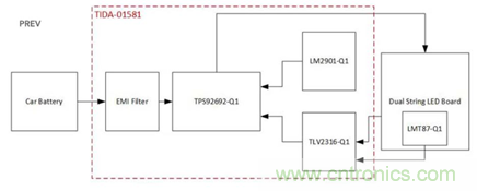 圖示1-大聯(lián)大世平推出基于TI產(chǎn)品的車輛日間行車燈LED驅(qū)動器參考設(shè)計(jì)系統(tǒng)架構(gòu)圖