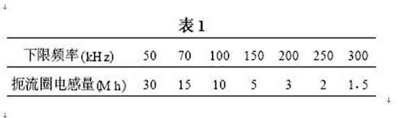 L1用于濾除低頻共態(tài)噪聲,它的磁芯一般采用高頻鐵氧體磁性材料。由于鐵氧體磁性材料沒(méi)有渦流的影響,高頻率仍能保持較高的導(dǎo)磁率,缺點(diǎn)是弱磁場(chǎng)容易飽和,但是L1在繞制時(shí)采用雙線(xiàn)并繞的方式,即在一個(gè)閉合磁路的磁芯上繞制相同電感量的兩個(gè)繞阻,電源電流經(jīng)兩個(gè)繞阻產(chǎn)生相反磁通,相互抵消,防止磁芯飽和。對(duì)于共態(tài)噪聲。互感系數(shù)產(chǎn)生磁通相互增強(qiáng),即電感量增強(qiáng),能很好的抑制共態(tài)噪聲。L1的共態(tài)扼流圈的電感量一般由所要抑制的噪聲電平的下限頻率(DC/DC轉(zhuǎn)換模塊的基波頻率)確定,下限頻率越高,所需要的電感量越小,粗略對(duì)應(yīng)值見(jiàn)表1。