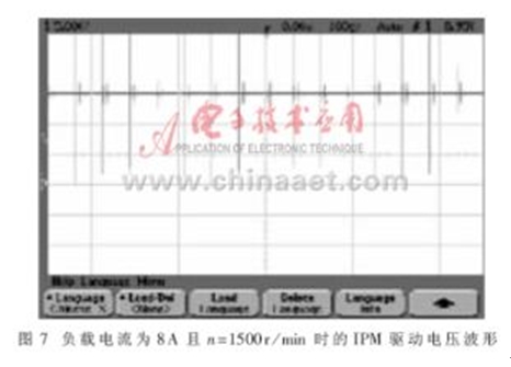 圖7為負(fù)載電流為8A、SRM額定轉(zhuǎn)速運(yùn)行時IPM的15V驅(qū)動電壓波形。