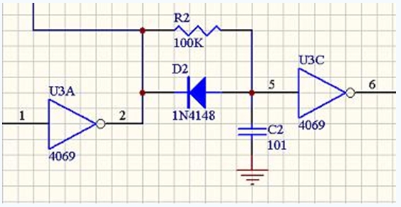 這個電路要求在IN端輸入的是邊緣陡峭的方波脈沖,因此控制信號從單片機或者其他開路輸出的設備接入后,要經過施密特觸發(fā)器(比如555)或者推挽輸出的高速比較器才能接到IN端。如果輸入邊緣過緩,二極管延時電路也就失去了作用。