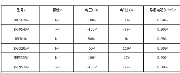 附錄:幾種IRF場效應管的參數(shù)