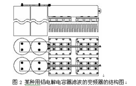 從上述兩電容器的參數(shù)可以明顯看到:與鋁電解電容器相比,ESR、最大有效值電流、寄生電感、浪涌電壓/額定電壓的比值、浪涌電流均明顯優(yōu)于鋁電解電容器,還有一個重要因素就是薄膜電容器的壽命是鋁電解電容器所無法相比的。如某種用鋁電解電容器濾波的變頻器的結(jié)構(gòu)如圖2。