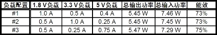 表2:不同輸出在各種負載配置下的能效。