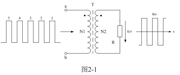 為了簡(jiǎn)單起見,我們把單激式變壓器開關(guān)電源等效成如圖2-1所示電路,其中我們把直流輸入電壓通過控制開關(guān)通、斷的作用,看成是一序列直流脈沖電壓,即單極性脈沖電壓,直接給開關(guān)變壓器供電。這里我們特別把變壓器稱為開關(guān)變壓器,以表示圖2-1所示電路與一般電源變壓器電路在工作原理方面還有區(qū)別的。