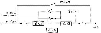 (2)由于沒有采用靜態(tài)開關,交流輸入電源故障時,將負載從交流輸入電源轉換至逆變器所需的轉換時間較長,不能滿足復雜的靈敏負載的需要。