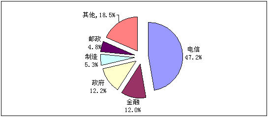 通信電源需求呈擴散化發(fā)展。2008年通信電源市場主要由電信、金融、政府和制造行業(yè)市場構(gòu)成,這四個平行市場的份額超過75%。其中電信行業(yè)占據(jù)整體份額的47.2%,為通信電源第一大應用行業(yè)。但是隨著不同行業(yè)信息化建設的深入,通信電源需求出現(xiàn)擴散化的趨勢,從長期來看,制造業(yè)、政府等領(lǐng)域?qū)⒊蔀榻窈笤鲩L較快的應用市場。