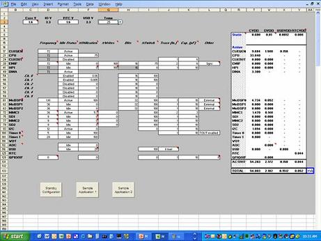 數(shù)據(jù)表未考慮到功耗實(shí)際上由兩部分組成:工作在內(nèi)核電壓源上的處理器和工作在I/O電源上的外設(shè)都涉及功耗問題。設(shè)計(jì)小組希望用不同的實(shí)施方法和平臺(tái)比較功耗。