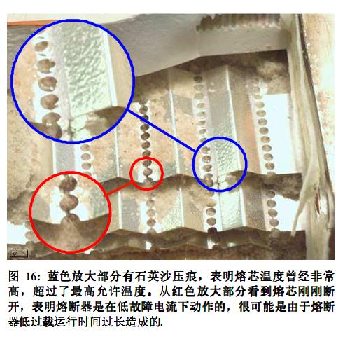 如果熔斷器額定電壓低于故障系統(tǒng)電壓,各狹頸處燃起的電弧將持續(xù)燃燒而會(huì)合,最終電弧貫穿整個(gè)熔斷器。此時(shí)熔斷器的陶瓷管殼將不能承受內(nèi)部壓力而發(fā)生劇烈爆炸。所幸人們一般都根據(jù)輸入電壓選擇熔斷器,此類故障在現(xiàn)場(chǎng)很少發(fā)生。另外,如果嚴(yán)格按照IEC標(biāo)準(zhǔn)執(zhí)行產(chǎn)品測(cè)試,10%的安全裕量也消除了系統(tǒng)電壓波動(dòng)帶來的隱患。