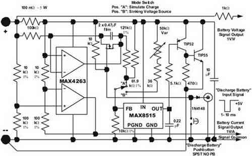 用恒流源對(duì)電池充電時(shí)電壓將不斷變化,以一定的正斜率上升。這是由于放電和其它電池內(nèi)部化學(xué)變化過(guò)程中,電池正極周?chē)鄯e的極化離子逐漸減少。因此,充電器的工作點(diǎn)取決于電池連接時(shí)間的長(zhǎng)短,以及電池的工作歷史。用大多數(shù)電子實(shí)驗(yàn)室能夠找到的通用器件構(gòu)建負(fù)載,以模擬這一復(fù)雜負(fù)載的模型很困難。