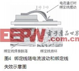 通常,逆變器設(shè)計(jì)主要考慮IGBTTjmax(最高結(jié)溫)的限制,但在混合動(dòng)力車(chē)應(yīng)用中,逆變器較少處于恒定工況,加速、巡航、減速都會(huì)帶來(lái)電流、電壓的改變,由此帶來(lái)的ΔTj(結(jié)溫快速變化)將會(huì)更大程度影響IGBT的壽命,IGBT導(dǎo)通電流波動(dòng)時(shí),綁定線(xiàn)也會(huì)隨之?dāng)[動(dòng),對(duì)綁定線(xiàn)和IGBT芯片連接可靠性有較大的影響,反復(fù)的擺動(dòng)可能導(dǎo)致綁定線(xiàn)壽命的耗盡(EOL,EndofLife),例如綁定線(xiàn)和IGBT芯片焊接脫落、綁定線(xiàn)斷裂等,直接導(dǎo)致IGBT的損壞。