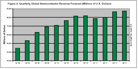 所有主要半導(dǎo)體類別——微型元件、邏輯、模擬、分立與光學(xué)及傳感器,預(yù)計(jì)2010年的增幅都將高于25%。