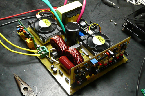 我在裝這臺(tái)樣機(jī)時(shí),曾遇到過300W以下一切正常,加到300W以上,H橋管子就有一個(gè)燒掉,也曾請(qǐng)朋友幫我診斷和查找原因,后來是加強(qiáng)了高壓直流和SPWM板電源的濾波就一切正常了
