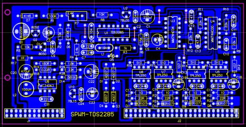 1.SPWM的驅(qū)動(dòng)核心采用了單片機(jī)SPWM芯片,TDS2285,所以,SPWM驅(qū)動(dòng)部分相對(duì)純硬件來講,比較簡(jiǎn)單,制作完成后要調(diào)試的東西很少,所以,比較容易成功。