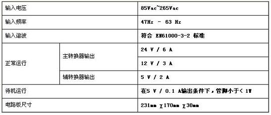 其工作原理是,如果反饋信號水平降至突發(fā)進入閾值(FB1)以下,并持續(xù)一段時間,控制IC進入主動突發(fā)模式。這時開關(guān)脈沖停止,輸出電壓則會降低,然后反饋電壓升高。當(dāng)它升到突發(fā)開始水平(FB3),開關(guān)脈沖恢復(fù)。在處于突發(fā)模式期間,輸出會升高,反饋電壓開始降低。當(dāng)它降到突發(fā)結(jié)束水平(FB2),開關(guān)脈沖再次停止。這種突發(fā)交替性結(jié)束開始,構(gòu)成主動突發(fā)模式。如果負載由輕載提高至重載,反饋電壓值將開始提高。如果反饋電壓水平超過突發(fā)退出閾值(FB4),IC將離開主動突發(fā)模式。屏蔽時間和其他2個閾值(FB1和FB4)可有效降低錯誤觸發(fā)突發(fā)模式的幾率。最后,如果IC進入主動突發(fā)模式,最大峰值電流閾值將降至原始值的三分之一或四分之一。這可大大降低變壓器電流噪音。除了待機轉(zhuǎn)換效率,還可降低輸出電壓、主總線和輸入電壓感測功率損耗。例如,在主功率級的輸入電壓采樣部分采用4MΩ電阻分壓器。系統(tǒng)性能表1推薦解決方案的技術(shù)規(guī)格