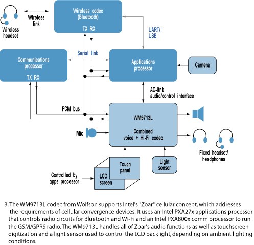 蘇格蘭的Wolfson微電子公司從事硬件音頻編碼解碼器的制造,該公司新產(chǎn)品開發(fā)部的副總裁PeterFrith指出,給手機加入回放MP3的功能,或者用于下載音樂,或者作為高質(zhì)量的鈴聲,意味著用戶已經(jīng)希望在手機中看到一個相對高保真的回放系統(tǒng)。因此,手機制造商目前期盼出現(xiàn)功耗甚至更低的便攜式DAC,且能夠達到100dB的信噪比。