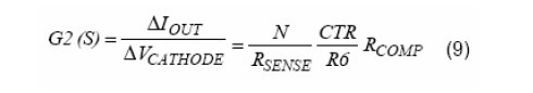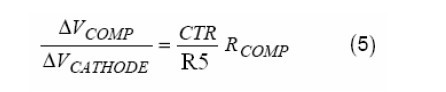 VCATHODE是AS431的陰極電壓,也就是誤差補償放大器的輸出電壓。CTR是光耦的電流傳輸比。R5(原文為R6,譯注)是與光耦的二極管串聯的限流電阻。RCOMP是AS3842的COMP腳當其試圖拉電流超過它的最大輸出電流時的輸出阻抗。