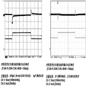 從動(dòng)態(tài)響應(yīng)的圖形對(duì)比中可以看到,無論是輸出過沖,還是恢復(fù)時(shí)間,MAX5051模塊都具有明顯的優(yōu)勢(shì)。