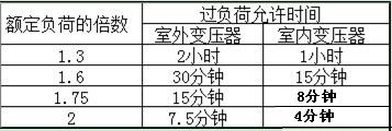 過負荷運行是指變壓器運行時超過了銘牌上規(guī)定的電流值。過負荷分為正常過負荷和事故過負荷兩種,前者是指在正常供電情況下,用戶用電量增加而引起的,它往往使變壓器溫度升高,促使變壓器絕緣老化,降低使用壽命,所以不允許變壓器過負荷運行。特殊情況下變壓器短時間內(nèi)的過負荷運行,也不能超過額定負荷的30%(冬季),在夏季不得超過15%。對后者,事故過負荷與允許過的時間要求見下表。