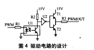 考慮到原副邊的電氣隔離,設(shè)計了以下驅(qū)動電路,如圖4。
