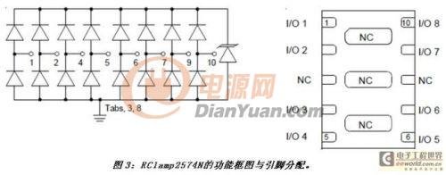 升特公司的最新以太網(wǎng)保護(hù)方案RClamp2574N可滿足并超過所有上述要求。建議將其放置于變壓器的PHY端,盡可能靠近磁體。RClamp2574N可配置為保護(hù)一個(gè)千兆以太網(wǎng)的全部四對(duì)差分線對(duì)。如圖3所示,八個(gè)I/O引腳中的每一個(gè)都有一個(gè)低電容的控向二極管對(duì),該器件用來將有害的浪涌電流引入內(nèi)部的低壓TVS二極管??叵蚨O管的工作電壓僅有2.5V,采用升特公司專利的EPD工藝技術(shù)制造。低壓導(dǎo)通是一個(gè)很重要的保護(hù)參數(shù),因?yàn)楹芏郟HY芯片都集成了ESD保護(hù)結(jié)構(gòu)。這些結(jié)構(gòu)并非針對(duì)承受很大的電能而設(shè)計(jì)。如果它們?cè)谕獠勘Wo(hù)實(shí)