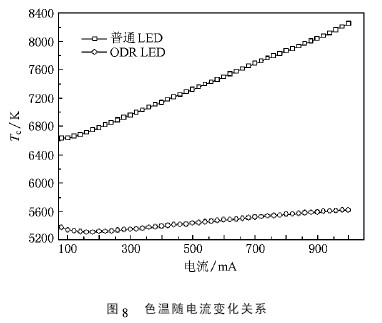 由兩種LED 曲線的解析( 4) ,( 5) 式也可以看出兩種LED 的電壓差差距較小,說明ODR LED 處理對(duì)LED 器件電壓基本無影響.