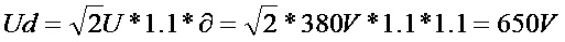 電網(wǎng)電壓為380V,不考慮波動,空載直流電壓Ud0約為線電壓峰值540V。在帶負載時,電壓有所下降,電容電壓: