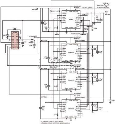 有些應用集中于用4個并聯(lián)的μModule穩(wěn)壓器取代單個開關,這將通過多相同步降低峰值開關電流。這些開關是由一個相位變化的時鐘從外部驅動的。每個開關的接通時刻之間都是有間隔的,從而在輸入中產(chǎn)生均勻的電流分布。在這種大功率系統(tǒng)中,電壓紋波降低了。同步并聯(lián)穩(wěn)壓器的關鍵優(yōu)勢是,由于消除了輸入和輸出中的紋波電流,減小了輸入和輸出電容器的尺寸,從而消除了對大容量電容器的需求。