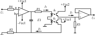 反之,當(dāng)輸入電壓Ui降低時,運放輸出端電壓降低,通過發(fā)光二極管的電流I1也隨之減小,與上類似,輸出電壓UO=R2I2也隨輸入電壓Ui的降低成比例地減小。