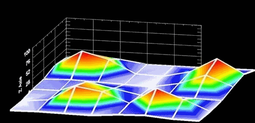 利用單層膜同步執(zhí)行雙觸點(diǎn)檢測也是可行的,但若采用能夠同時(shí)解決多觸點(diǎn)事件的雙層技術(shù),性能便會好得多。如圖7顯示在一個(gè)實(shí)驗(yàn)室測試模型中使用者用三根指頭和大拇指時(shí),電場的三維測量結(jié)果。